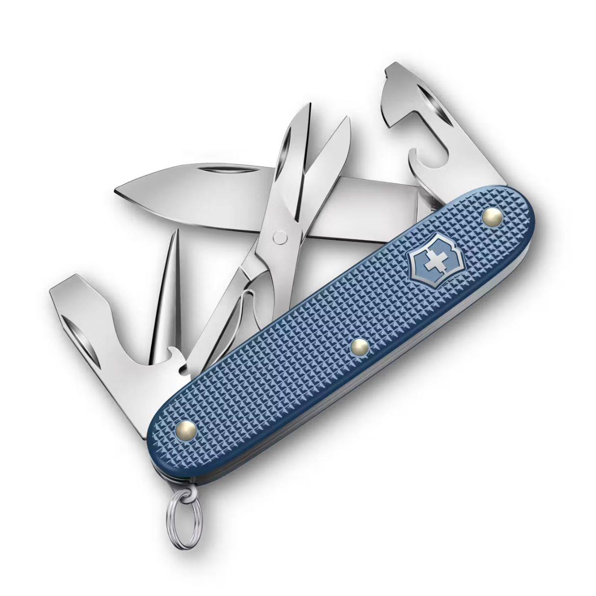 Hoja grande / Abrelatas / Destornillador 3 mm / Destapador / Destornillador 7 mm / Pela cables / Punzón escariador / Tijeras / Anilla